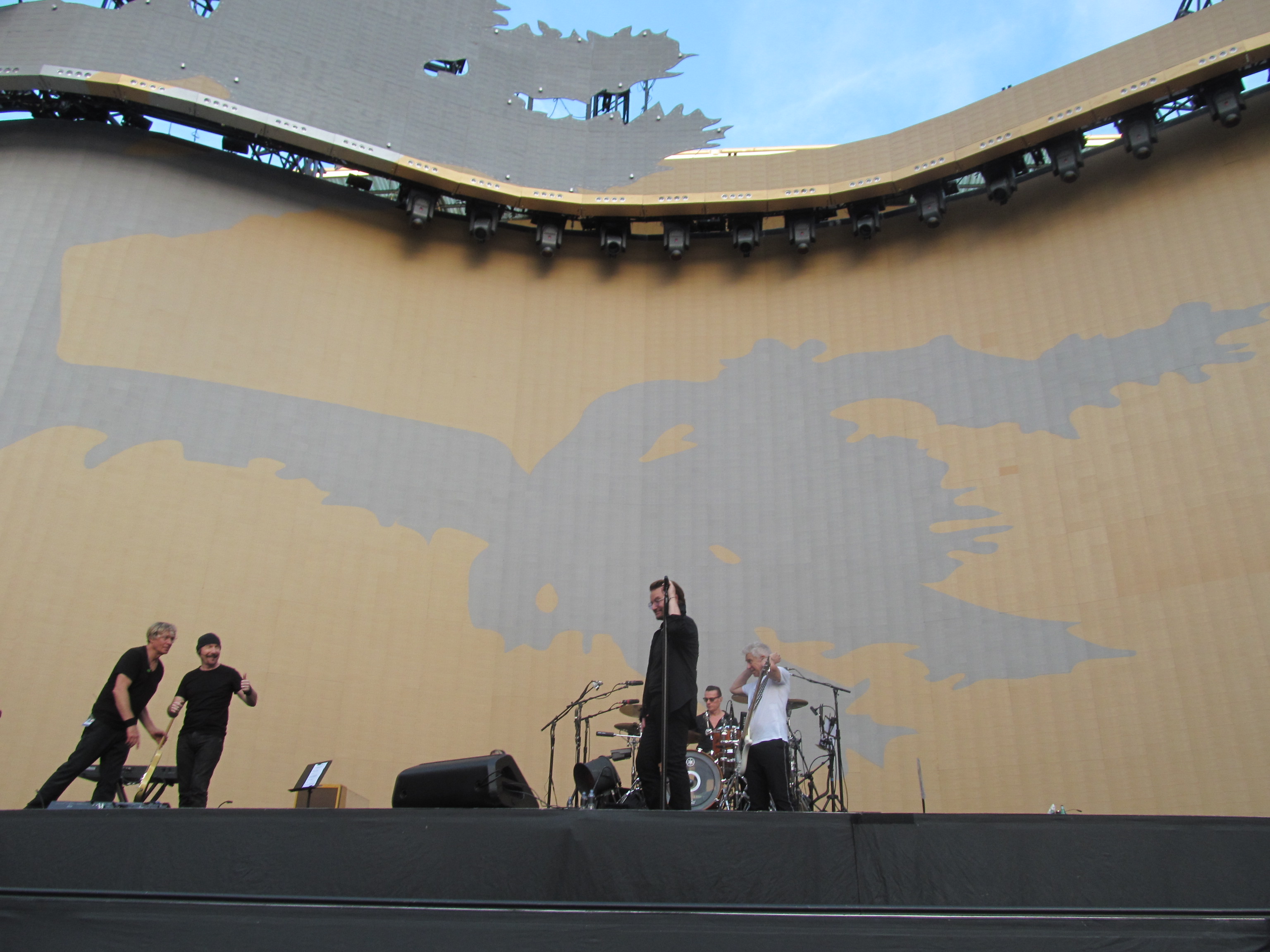 | Description: | Photos of a private rehearsal for firefighters in London the day before the European opening night. Photo posted on U2start with permission from author. |