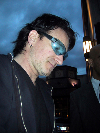 | Description: | Bono at Toronto airport greeting fans and signing autographs before flying to Montreal. Toronto 26/05/2001. Pic Credit: WENN |